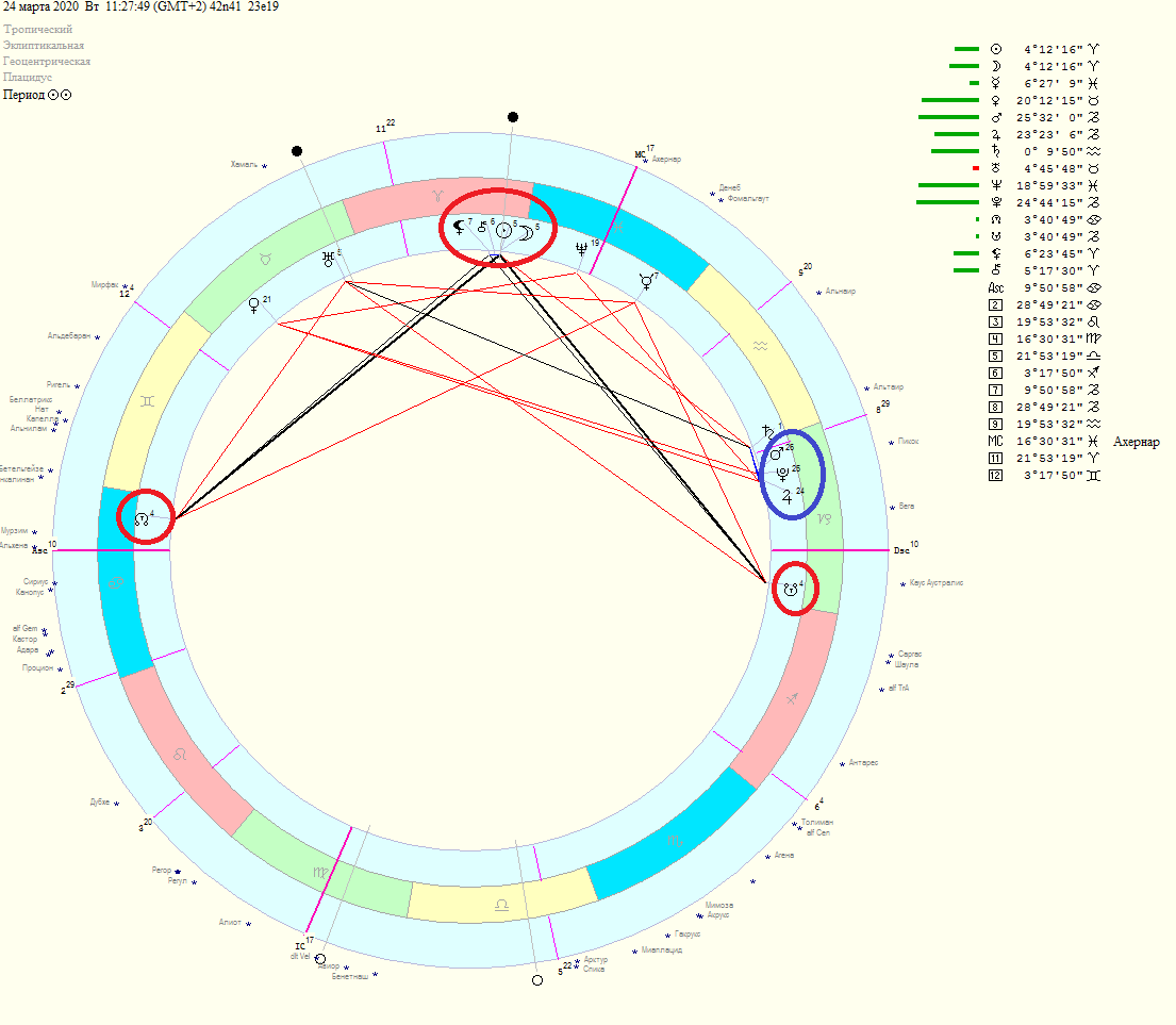 Господарят на това Новолуние е Марс, в момента се движи през Козирог, стартираха нови цикли, предстоят и още. Това е много енергия концентрирана на едно място, изключителна динамика, която няма как да не предизвика тези големи промени на които сме свидетели и които са твърди, кардинални, безкомпромисни – изпитание за цялото човечество. Венера, която сега е хармонично поставена, тези дни ще внесе повече оптимизъм по отношение на ценности и притежания, но това е Венера и нейното влияние е бързопреходно, други сили играят тук сега главната роля и годината обещава да е богата на изпитания… Има и още един важен акцент. Това Новолуние съвпада с Лилит /“любимата ми“/, с Хирон /лечителят/ и е в квадрат с кармичните възли. Определението което ми идва спонтанно е – Световна карма, защото тези аспекти на астрологичен език са кармични. Искрено се надявам, този съвпад на Новолунието да има ефекта на едно „изгаряне“ – /запознатите с астрологията са наясно с принципа за планети които попадат в слънчевите лъчи/ и по този начин образно да „изгори“ това негативно влияние, този необясним страх породен у много хора. Тук искам да направя едно пояснение. Лилит няма пряка връзка към „създаването“ и разпространението на този вирус, тя не се свързва с активни действия – това е работа на други планети. Тя обаче оказва влияние върху психичното и емоционално състояние на хората, а Хирон пък държи ключа на изцелението, при това на много лично ниво, отвътре – навън /знакът Овен, първо А-за е важен сега/. Енергията на Лилит често е неуловима, освен това действа психотично и на моменти, както обичам да се изразявам за нея – брутално. Този аспект беше най-силно активен, в началото на март, по Пълнолуние в Дева, когато обявиха и сложиха ограничения и за България. Всички се озовахме в една ситуация за която не сме си и помисляли, че може да ни се случи. Много хора тогава не можеха да определят какво чувстват. Ще ви цитирам думите на една моя близка която сподели с мен: „не изпитвам точно страх, усещам все едно нещо се носи във въздуха, вибрира, нещо свръх необяснимо, което не мога да оприлича с нищо друго което съм изпитвала до сега …“ – ето това е енергията на Лилит. Състояние отвъд разум и страх на което не можеш да дадеш име. Лилит е в Овен, знак управляван от Марс, планета която има пряко отношение към бързоразвиващите се трескави състояния, медицината – разбира се, не трябва да се концентрираме върху нея, но не може да се пренебрегне и нейното влияние, освен това тя ще остане в Овен до средата на октомври! Сега е нужна мобилизация и адекватни и непоколебими решения и действия /по Марс/, за да бъде овладяно всичко това. И те се правят и ще продължат да се правят. Краят на март, до към 7 – 8 април ситуацията може да е по напрегната. Тогава Марс ще е сменил знака, ще съвпадне със Сатурн и ще се конфронтира с Уран – тази енергия е взривоопасна и изисква повишено внимание. Тази енергия обаче, наред с финансови изпитания ще донесе и иновативните решения и приятелска подкрепа.