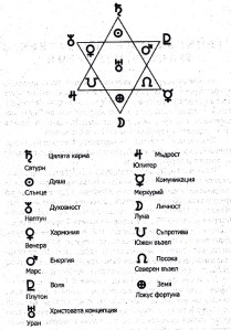 Звездата на Давид, ясно илюстрира взаимодействието на планетите в рамките на прераждането и кармата.