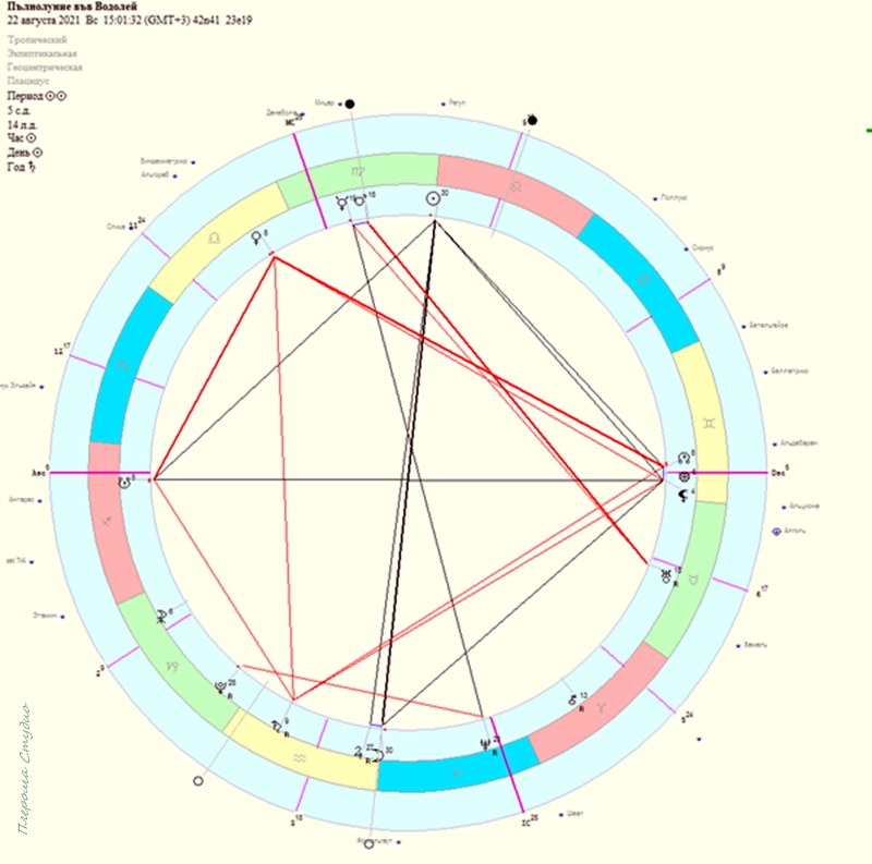 Реализацията не е пълна, нещо липсва, нещо ще се повтори, ще върне нещата назад. Ретроградни управители: Сатурн – в предстоящ точен тригон с тронова Венера, Уран – в хармоничен аспект със съвпада Меркурий-Марс, Луната е в близък съвпад с ретрограден Юпитер! Следва да се прояви търпение, разум, да не се пришпорват нещата и да следват знаците на съдбата. Родените в последните градуси на Лъв 21-22.08 – Водолей 17-18.02 са „най – потърпевши“ и горното важи най-вече за тях.