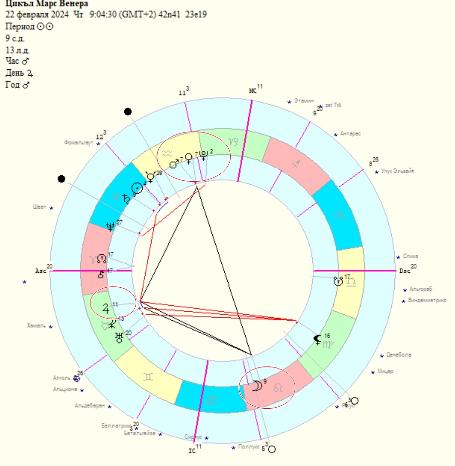 Следващият цикъл между Венера и Марс ще бъде на 8.01.2026г в 18-я гр. на знака Козирог.