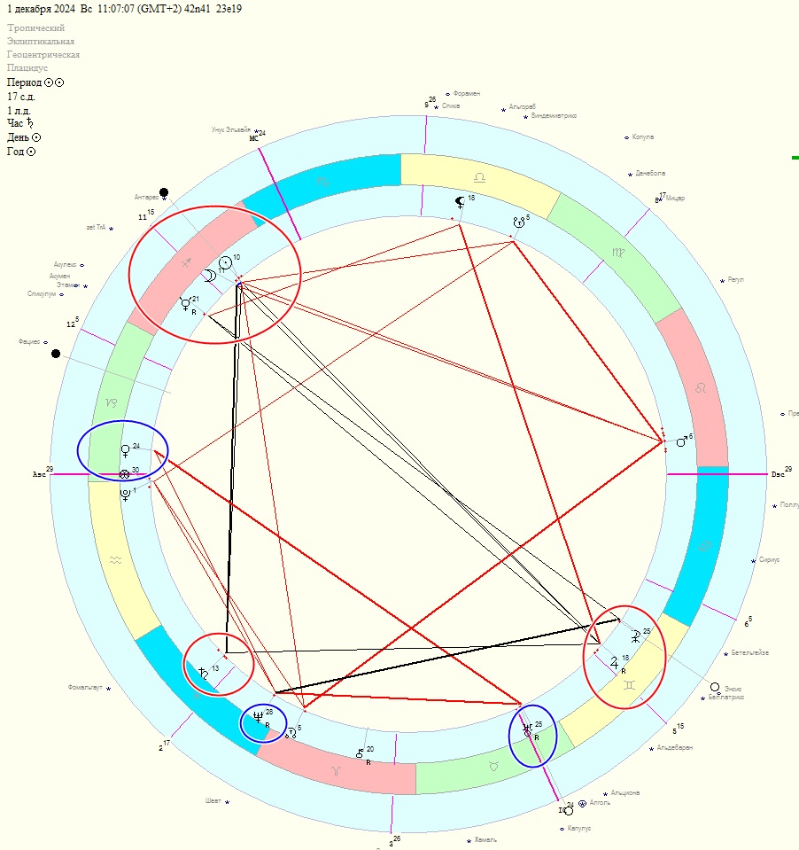 Ретрограден управител в заточение в Близнаци, ретрограден Меркурий в заточение в Стрелец, почти стационарен Марс, Сатурн все още в градуса на своето обръщане и всъщност под неговия зорък поглед ще преминава случващото се …